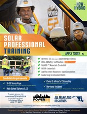The curriculum includes Leadership Development Training, OSHA-30 certification, NCCER, and NABCEP Credentialing, as well as job placement assistance upon successful completion. Participants MUST be available to visit in person to complete all labs and performance examinations as required.